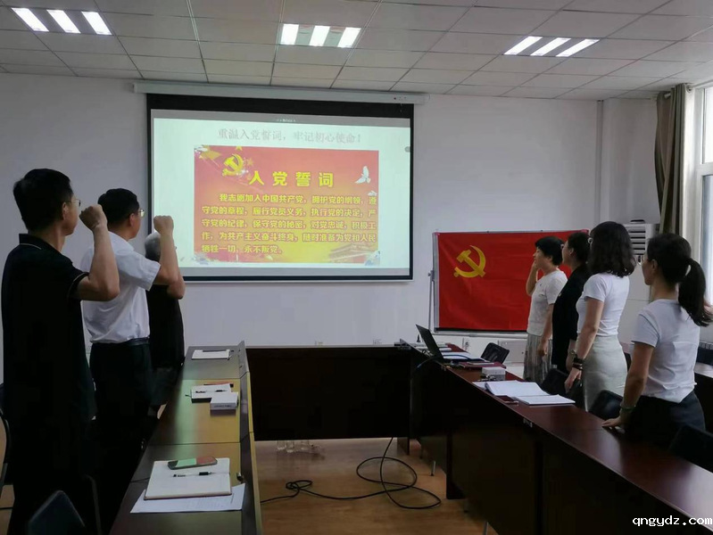在党支部副书记郭小靓的带领下,与会全体同志面向党旗进行了庄严宣誓,重温入党誓词,深刻感悟共产党人的初心与使命。
