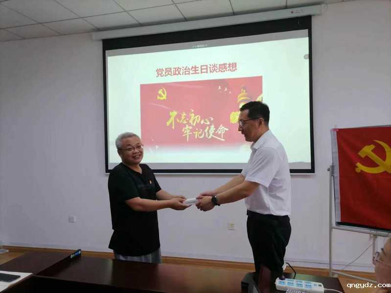吴琼为6-7月过政治生日的四位支部党员颁发生日礼物,希望大家铭记党员的第一身份与责任,切实发挥党员的先锋模范作用。郭小靓、王洛印、时誉玮分享了各自入党的经历与感想,表示在党组织过政治生日的仪式增强了自身的归属感、荣誉感和责任感,会立足本职岗位继续努力,把初心化为恒心,把使命化为担当。