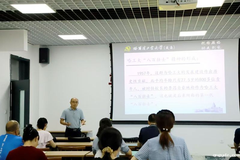 刘利军结合习近平总书记致哈工大建校100周年贺信精神,讲述了哈工大人在党的领导下扎根东北、爱国奉献、艰苦创业的奋斗历程,介绍了哈工大“八百壮士”的由来背景,展现了一代代哈工大“八百壮士”可歌可泣的奋斗历程和感人事迹,深刻剖析了哈工大之所以能产生“两个一大批”的深厚文化底蕴和“八百壮士”精神的内涵和特质,并联系实际阐述了“八百壮士”精神所蕴含的时代价值。精彩的报告引发教师深深的感动和强烈的共鸣,激励大家从“八百壮士”精神中汲取前进的力量。